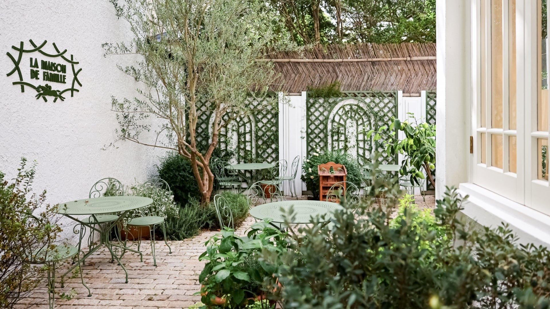 Nestled in the French Concession of Shanghai, the Paris of the East, the Longchamp Maison de Famille rises up like a bridge between Paris and China. Built in the 1940s and listed as a historical monument, this modernist brick apartment building (150m²) features a distinctive hip roof in red tiles and tall, steel, French-inspired windows which give it a timeless elegance. Outside, a romantic scene unfolds with tables draped in white, hydrangeas and wrought iron furniture, recreating the delicate atmosphere of a Parisian garden.
