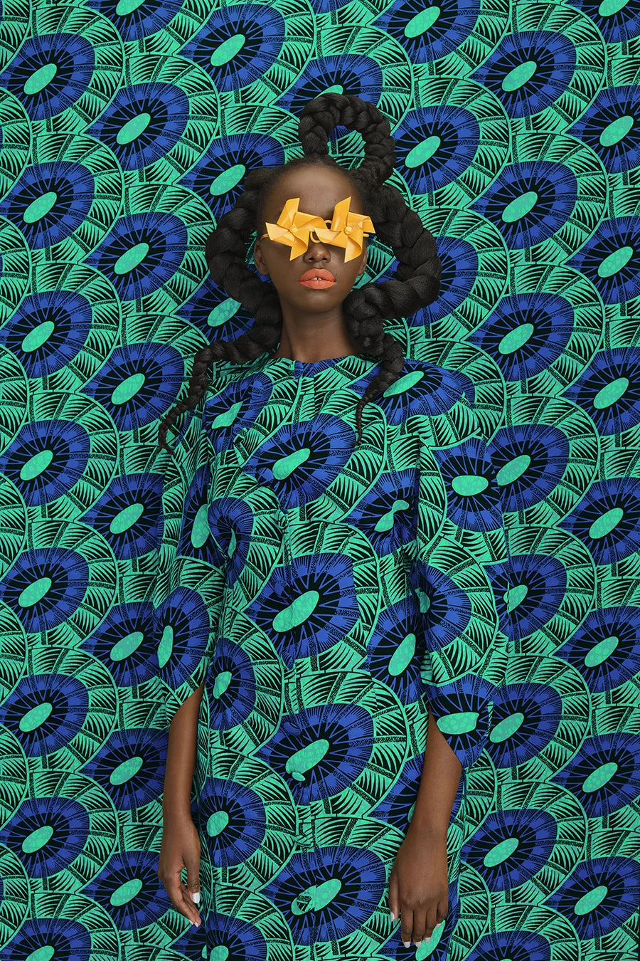 Thandiwe Muriu’s signature style is a unique fusion of art and fashion. Her photographs are known for their dazzling color palettes, the use of Ankara fabric—commonly referred to as wax—as backdrops, and Kenyan models dressed in wax textiles that blend seamlessly with their surroundings. In her portraits, the models seem camouflaged yet radiate undeniable strength. The optical illusion is striking: the women are both invisible and impossible to miss, evoking a sense of mise en abyme. This juxtaposition challenges the societal roles of women in Kenya and reflects on the barriers that often hinder their empowerment.